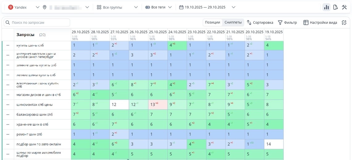 анализ сайтов конкурентов и маркетплейсов в нише шин и дисков;выявление ключевых коммерческих факторов ранжирования;формирование стратегии продвижения с фокусом на продажи.