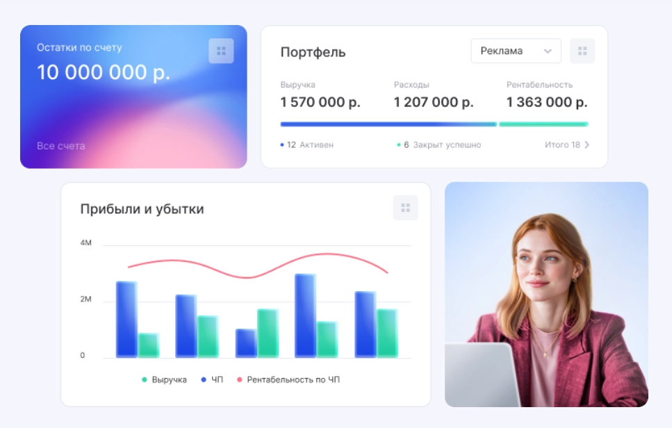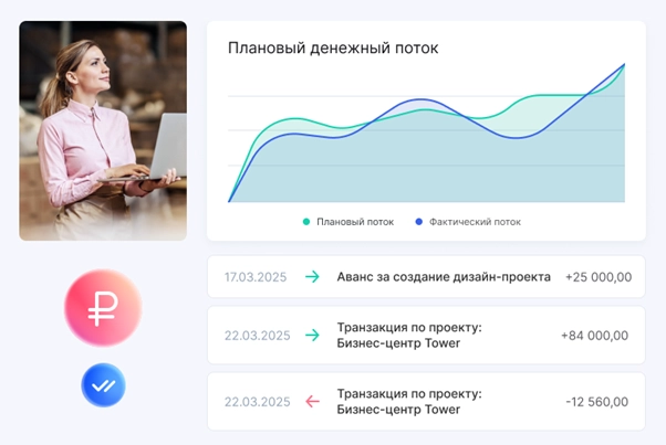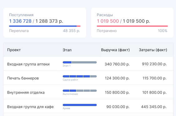 Инструмент для прозрачного учёта доходов и расходов в режиме реального времени. Вы получаете наглядную финансовую картину бизнеса, можете анализировать прибыльность проектов и принимать обоснованные управленческие решения.