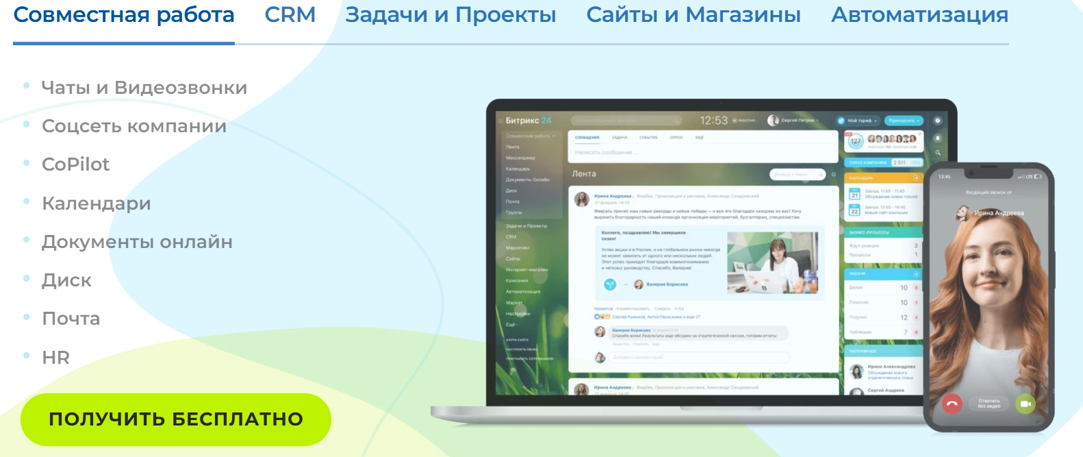 Гибкое управление задачами и проектами. Постановка задач, контроль сроков, диаграммы Ганта, канбан-доски и отчёты руководителей помогают держать всё под контролем и эффективно распределять ресурсы.