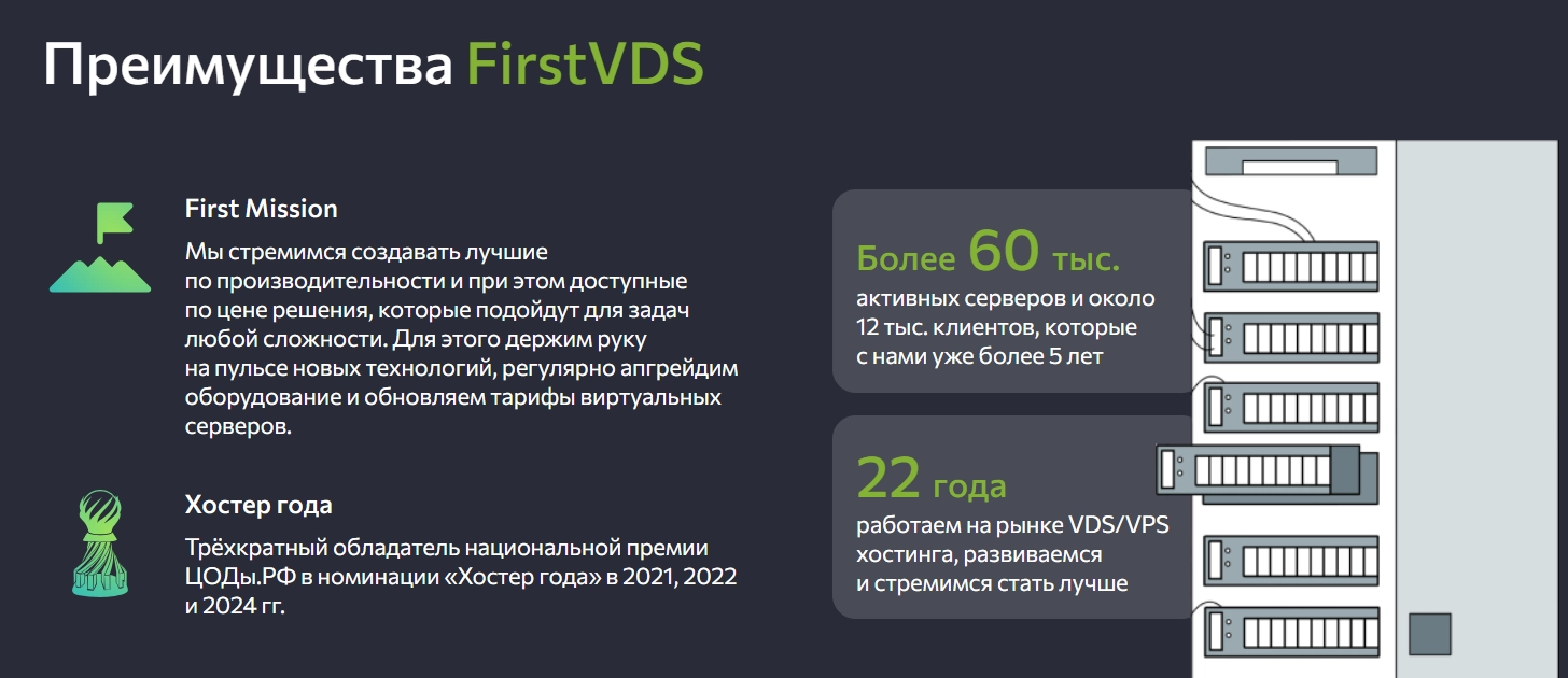 Серверы, построенные на кластере, обеспечивают высокую надёжность и стабильность. Если один узел выходит из строя, Ваш проект продолжает работу без простоев. Идеально для финансовых сервисов, интернет-магазинов и корпоративных систем.