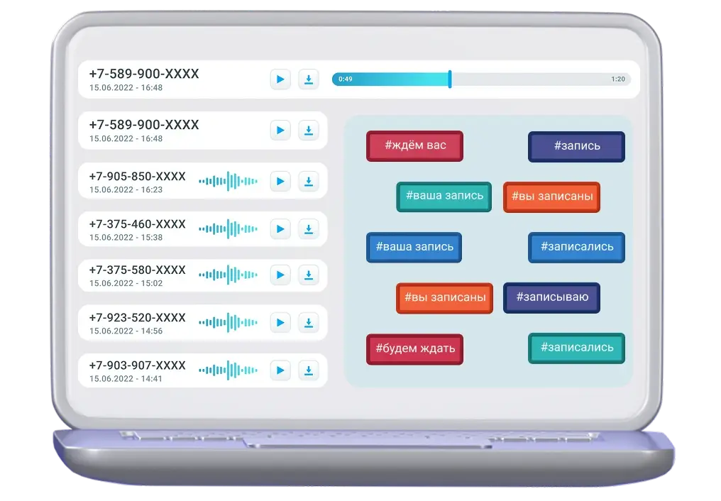 Сервис позволяет быстро выявлять потребности клиентов через подробные отчёты, видеть, какие фразы и предложения работают лучше всего, и находить точки роста для апсейла и доработки скриптов.