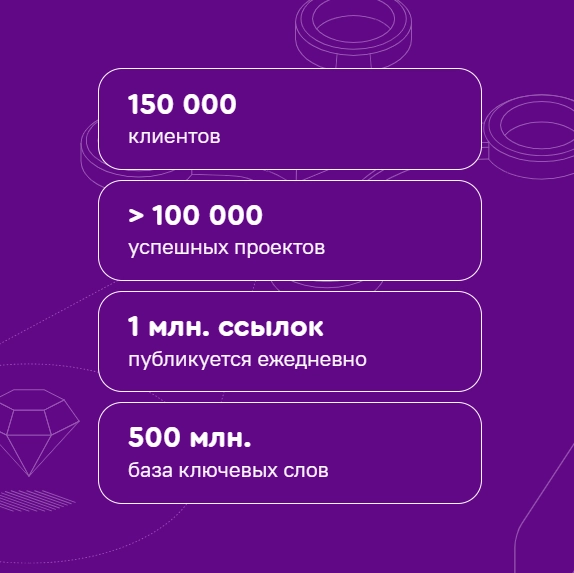 Сервис помогает масштабировать продажи за счёт продвижения товарных категорий, использования крауд-ссылок, размещения статей и расширенной контентной сети, которая усиливает видимость каталога.