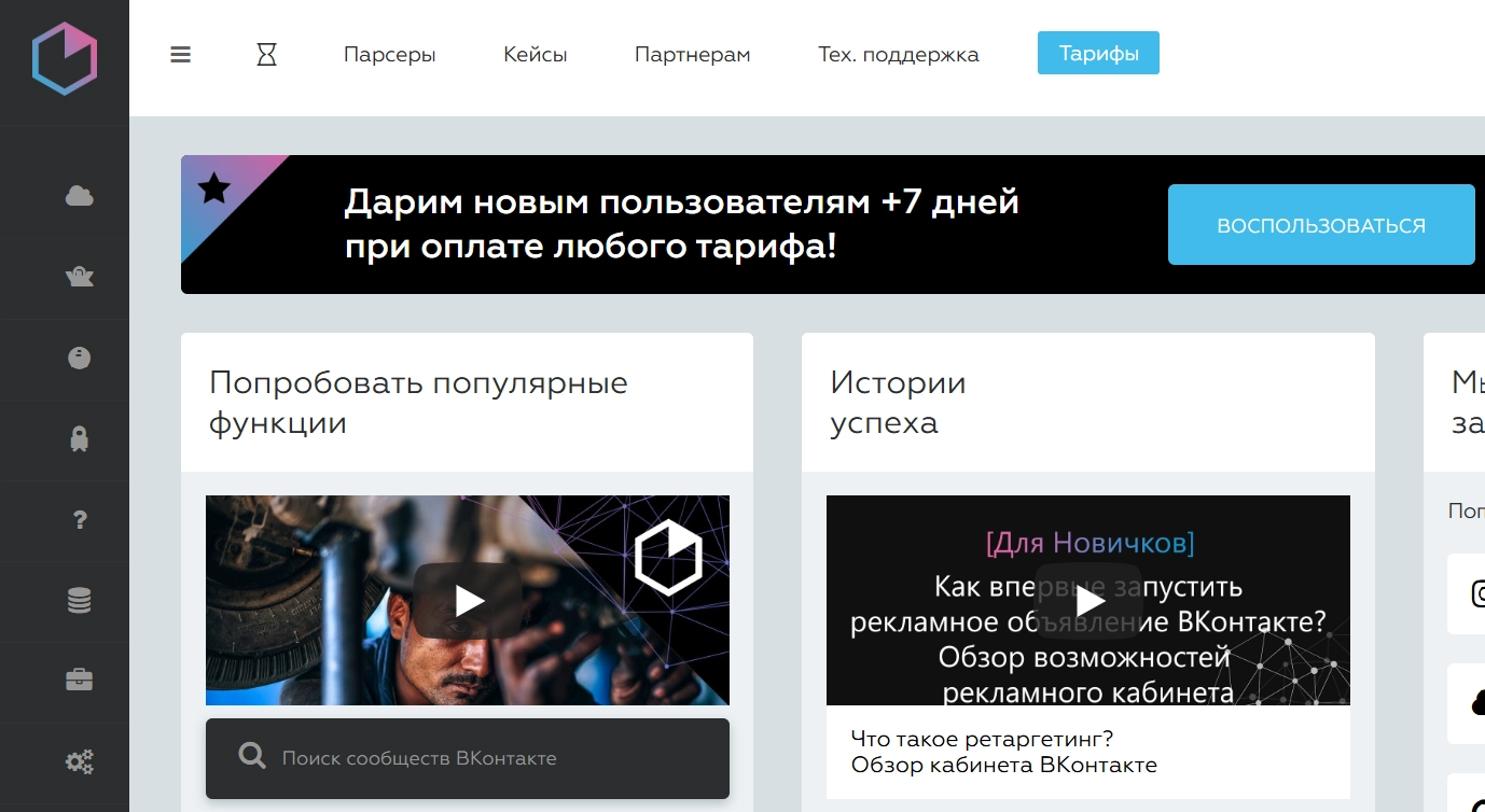 Сервис помогает собирать самую вовлечённую аудиторию — людей, которые ставят лайки, пишут комментарии, делают репосты и активно участвуют в жизни сообществ конкурентов. Это позволяет находить «тёплый» сегмент пользователей, уже проявивший интерес к похожим товарам или услугам.