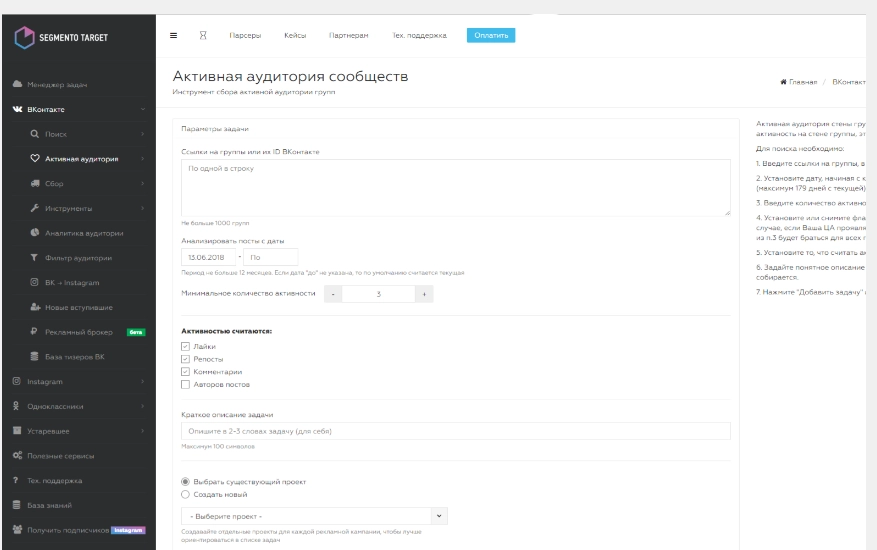 Встроенные алгоритмы очищают аудитории от ботов, офферов, фейковых и неактивных аккаунтов. Вы получаете только качественную базу реальных пользователей, что повышает эффективность таргетированной рекламы.
