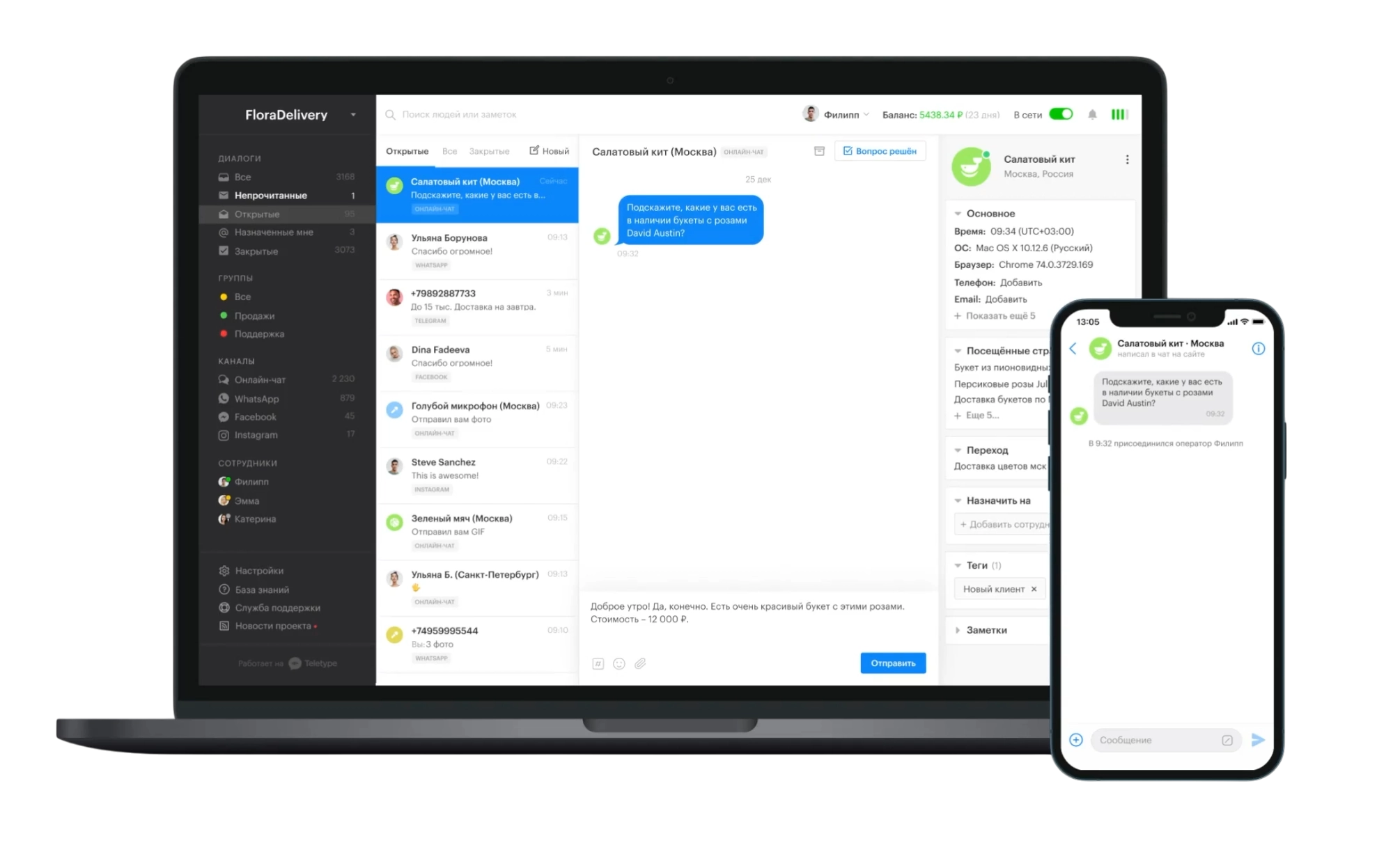 Каждый клиент уникален. Сохраняйте внутренние заметки, чтобы операторы были в курсе его особенностей и предпочтений. Это улучшает качество обслуживания и укрепляет лояльность.