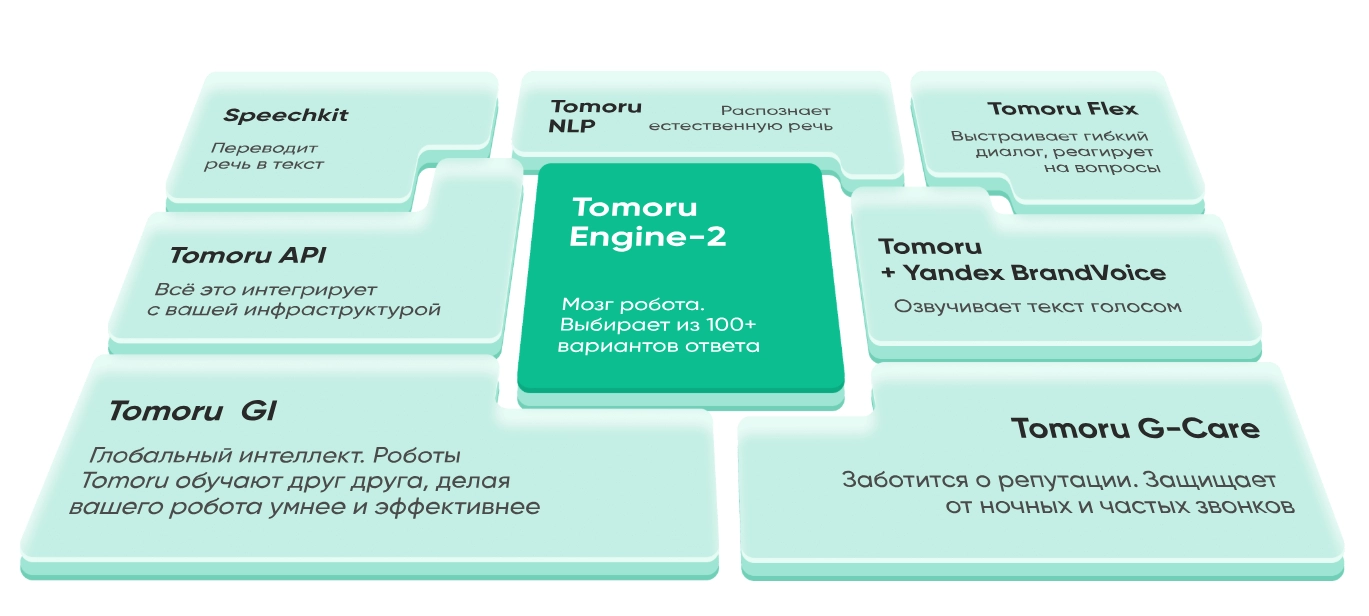 Tomoru может принимать входящие звонки, отвечать на типовые вопросы, направлять клиентов в нужный отдел и обрабатывать частые запросы. В технической поддержке робот помогает снизить нагрузку, закрывая до 90% стандартных обращений.