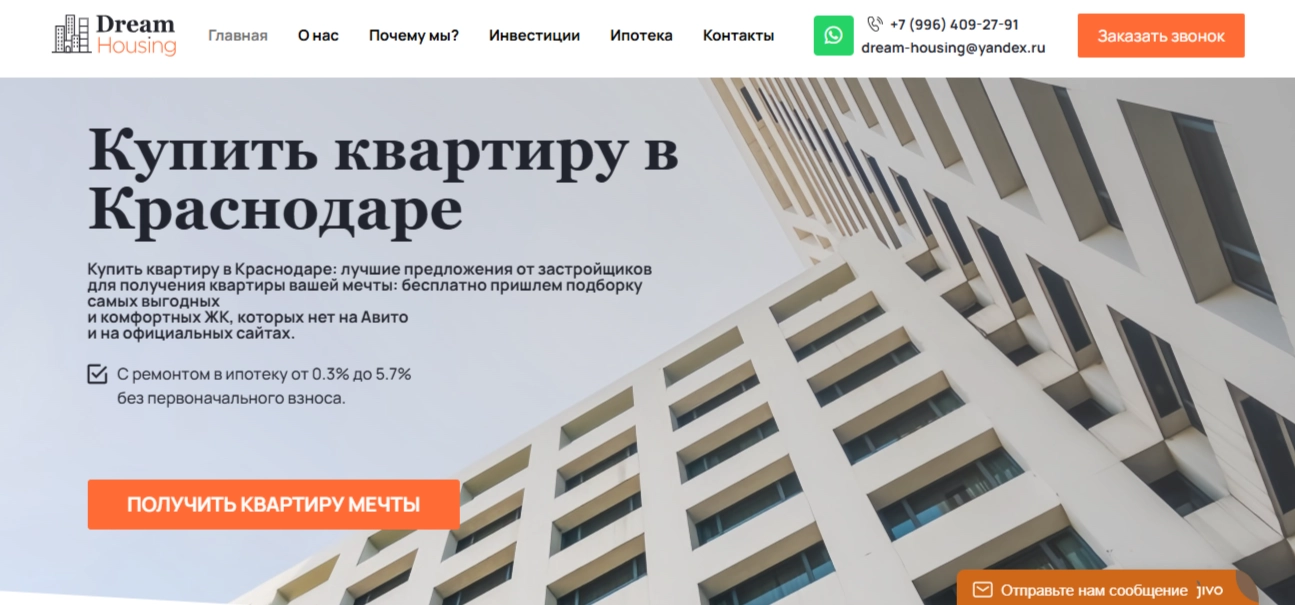 Беседа с командой DreamHousing для уточнения основных целей сайта, целевой аудитории и особенностей работы с недвижимостью в Краснодаре.