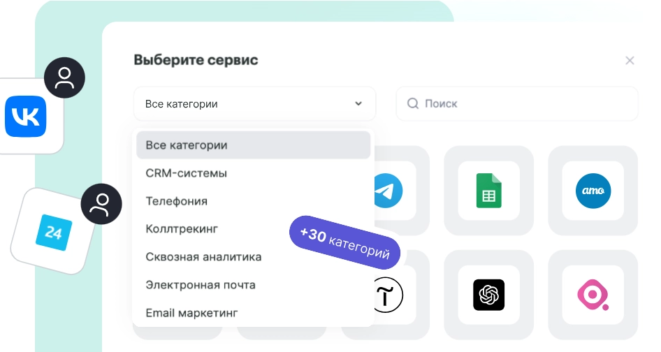 Albato автоматически собирает лидов из форм, сайтов, квизов, лендингов, социальных сетей и рекламных площадок. Все данные мгновенно передаются в CRM, мессенджеры, почту, чаты или Slack — без потерь и задержек.