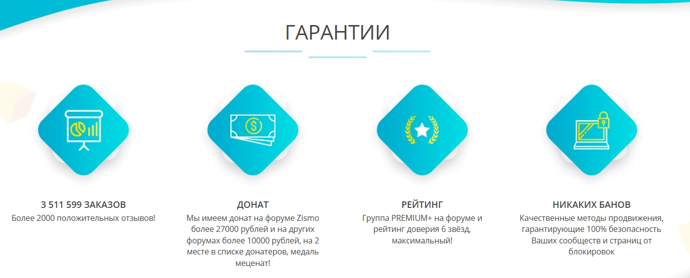 Продвижение полностью безопасно. Используются качественные методы раскрутки, которые гарантируют 100% защиту Ваших страниц и сообществ от блокировок и санкций со стороны платформ.