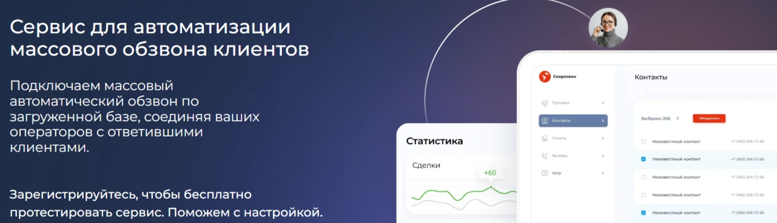 Система мгновенно запускает обзвон по любой базе и отбирает тёплые лиды. Скорозвон умножает конверсию без найма новых сотрудников — продажи растут, затраты остаются прежними.