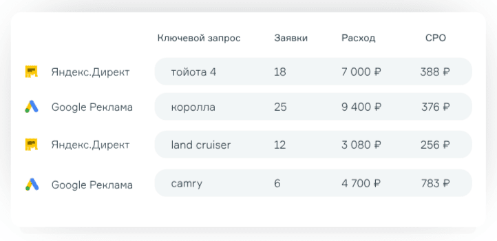 Возможность выгружать данные в Power BI, а также более 63 показателя аналитики бизнеса позволяют строить детальные визуальные отчёты. Эти инструменты дают прозрачную картину эффективности рекламы, помогают отслеживать путь клиента и принимать решения на основании точных данных.