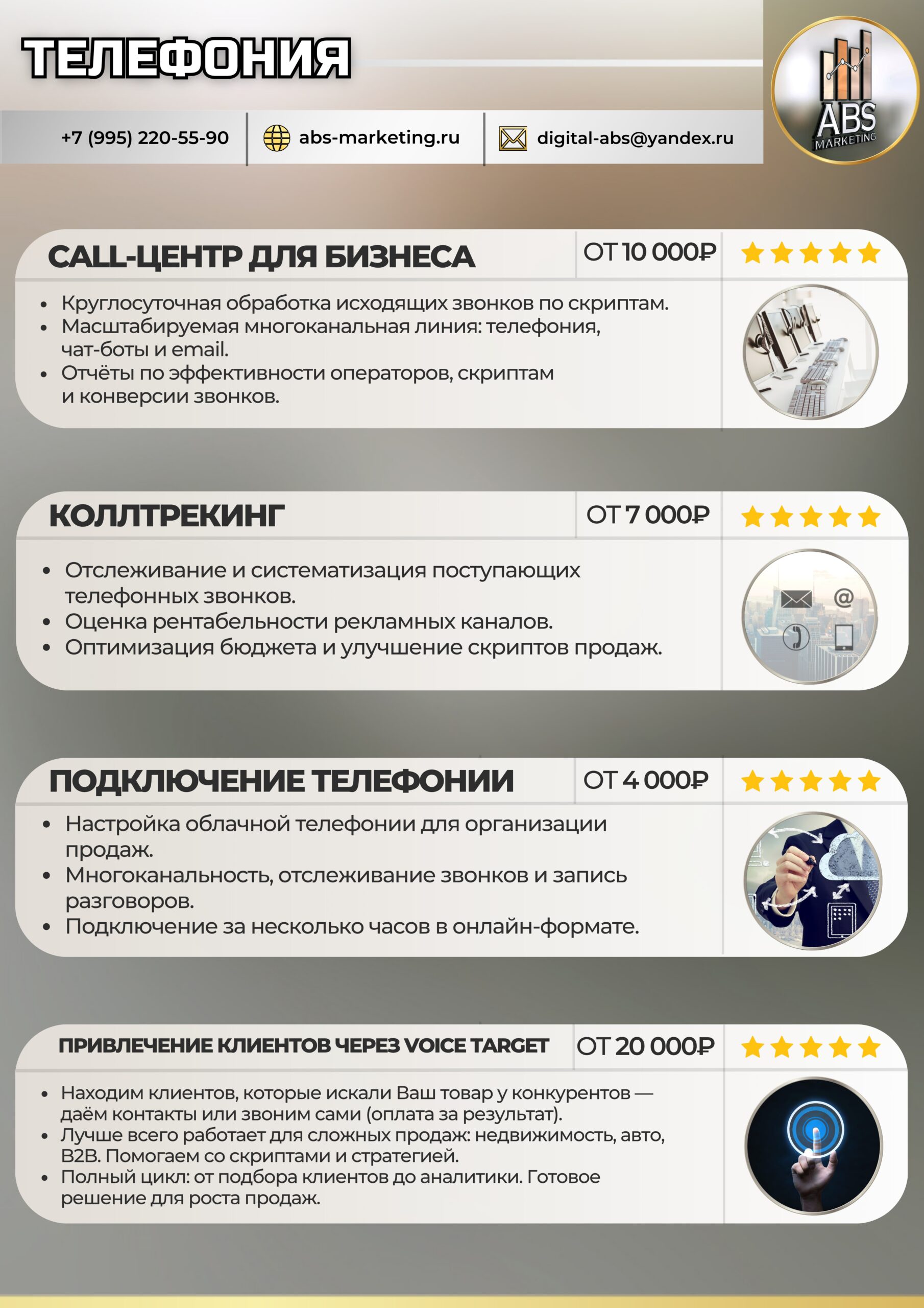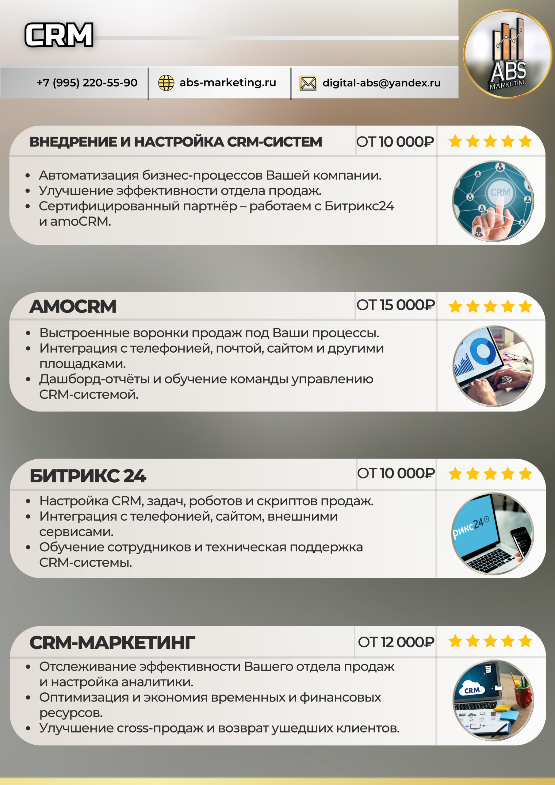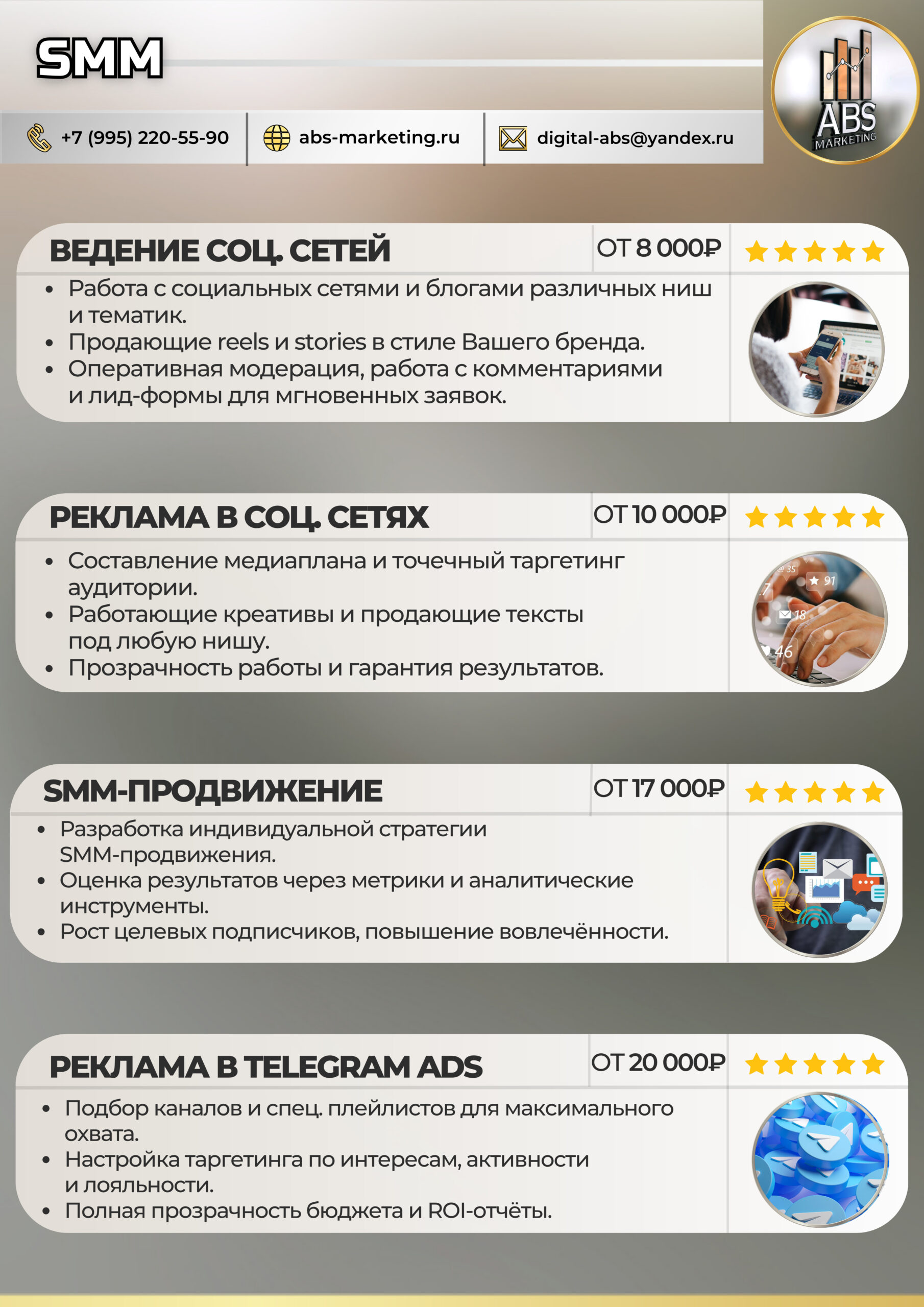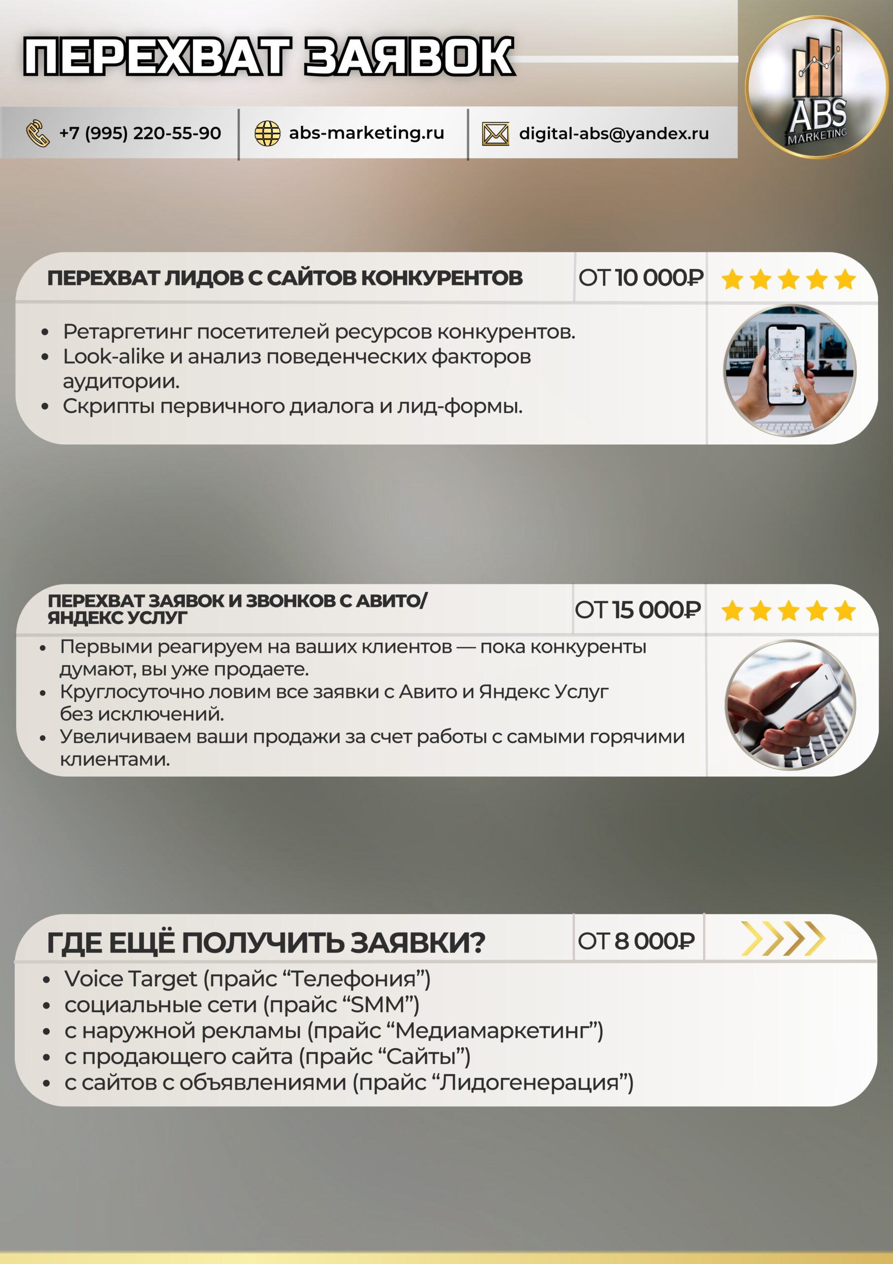 Прайсы ABS-Marketing помогут Вам сориентироваться в стоимости и масштабе предлагаемых решений. Итоговая сумма всегда рассчитывается под бизнес — с учётом Ваших задач, целей и специфики. Мы не предлагаем «универсальные пакеты», потому что уверены: у бизнеса нет типовых сценариев.